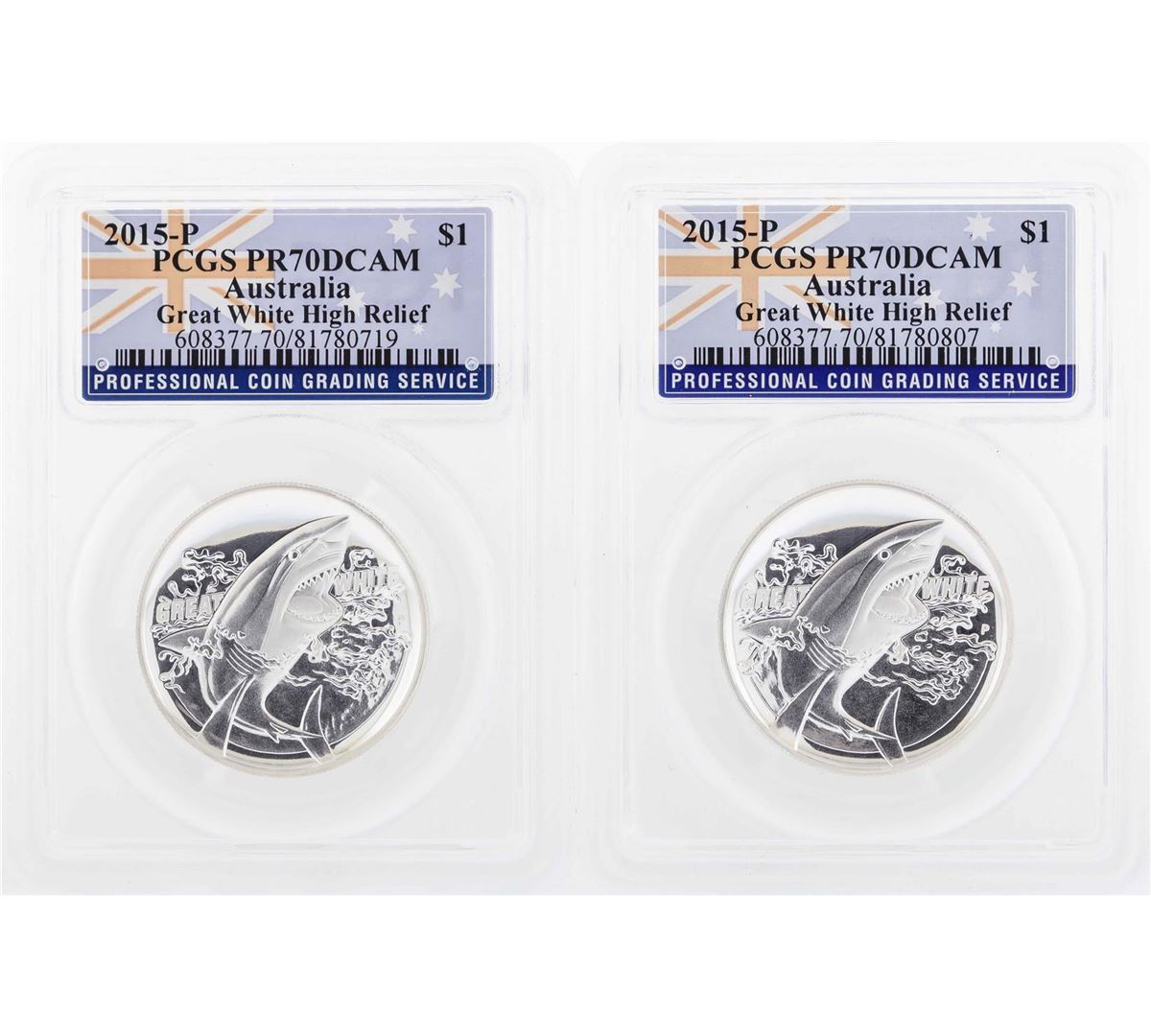 Set of (2) 2015 $1 Australia Great White High Relief Silver Coins