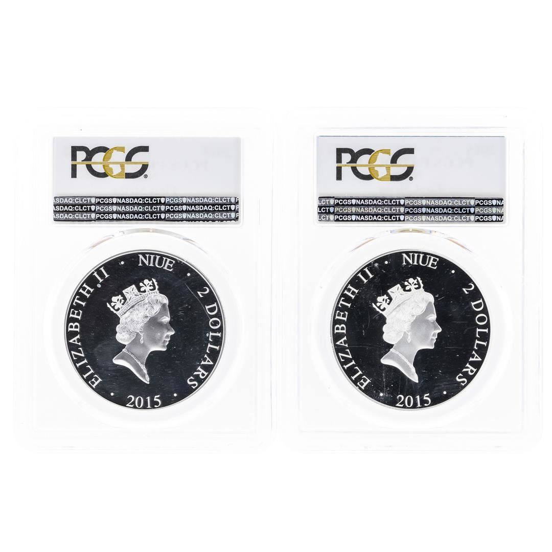 Set of (2) 2015 $2 Niue Jefferson & Lincoln Memorial Silver Proof Coins PCGS PR7