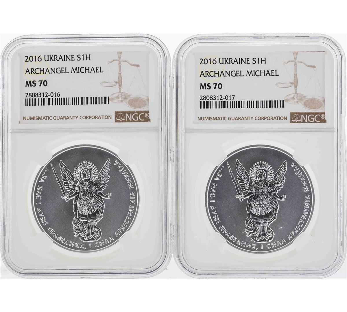 One Set of (2) 2016 Ukraine 1H Archangel Michael Silver Coins NGC MS70. NGC Certified.