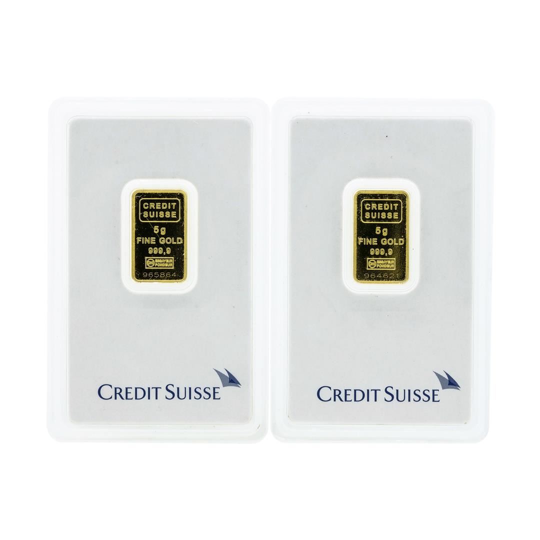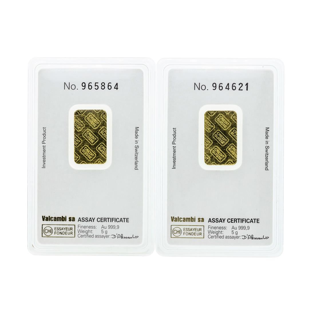 One Set of (2) 5 Gram Credit Suisse .9999 Fine Gold Ingot Cards.