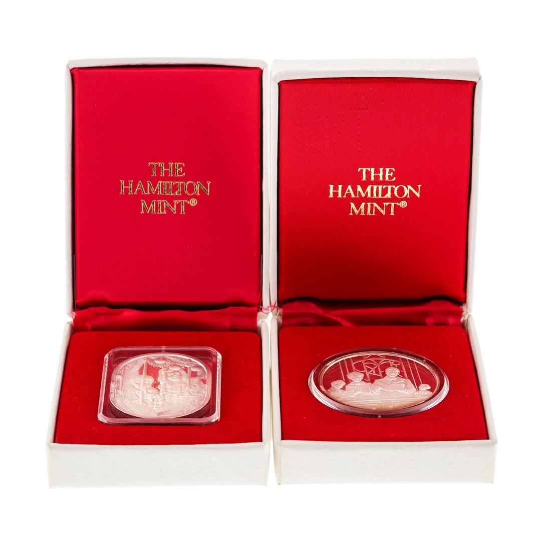One Set of 2 Hamilton Mint .999 Silver Ingots. (1) The night before Christmas 1976 1 oz silver bar coin and (1) Family worship Christmas 1976 1 oz silver coin.