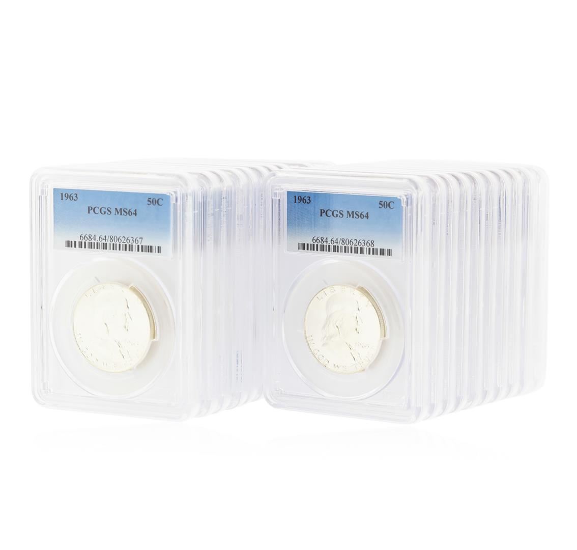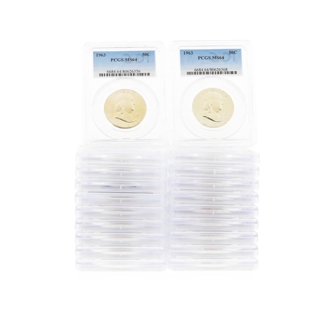 One Set of (20) 1963 Franklin Half Dollar Coins PCGS Graded MS64. PCGS Graded.