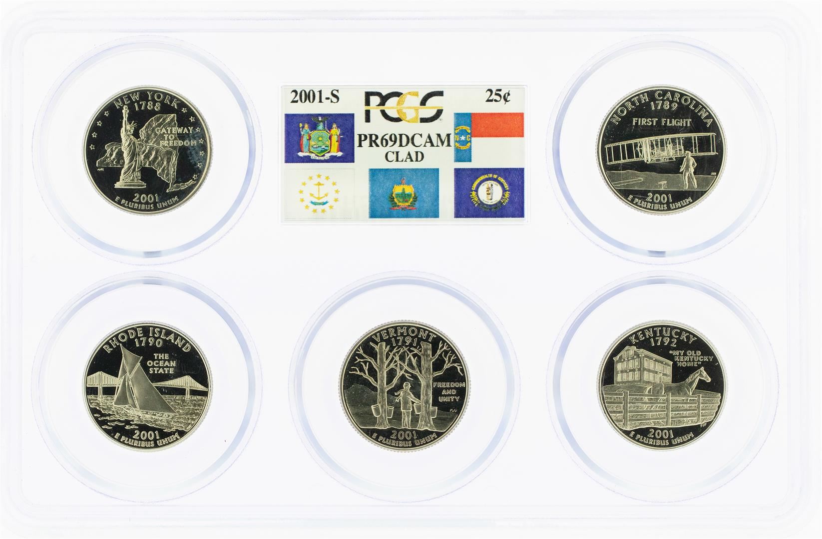 One Set of 2001-S (5) Coin Proof State Quarter Coins PCGS PR69DCAM. PCGS Graded.