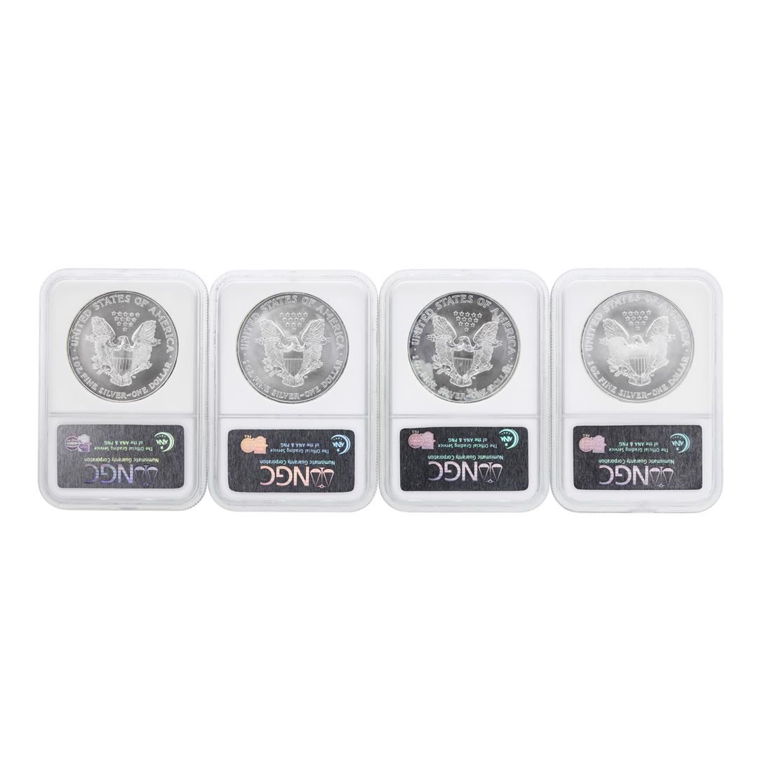 One Set of 2002-2005 $1 American Silver Eagle Coins NGC MS69. NGC Certified.