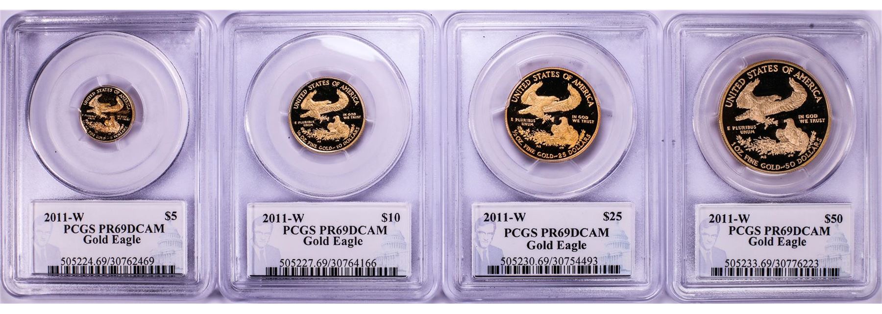 One Set of 2011-W Proof American Gold Eagle Coins PCGS PR69 Philip Diehl Signature. PCGS Graded.