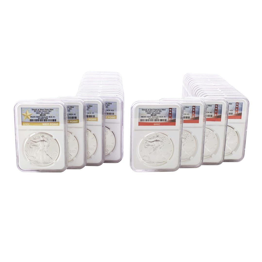 One Set of 2012-S/W $1 American Silver Eagle Coins NGC MS69 from Mint Sealed Box's 1-20. NGC Certified.