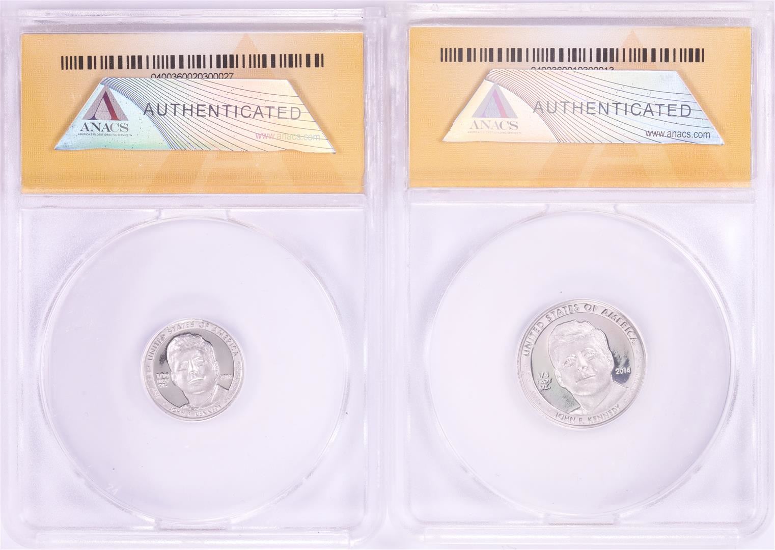Set of 2014 Proof 1/10 & 1/4 oz Platinum JFK Apollo 11 Anniversary Medals ANACS MS68