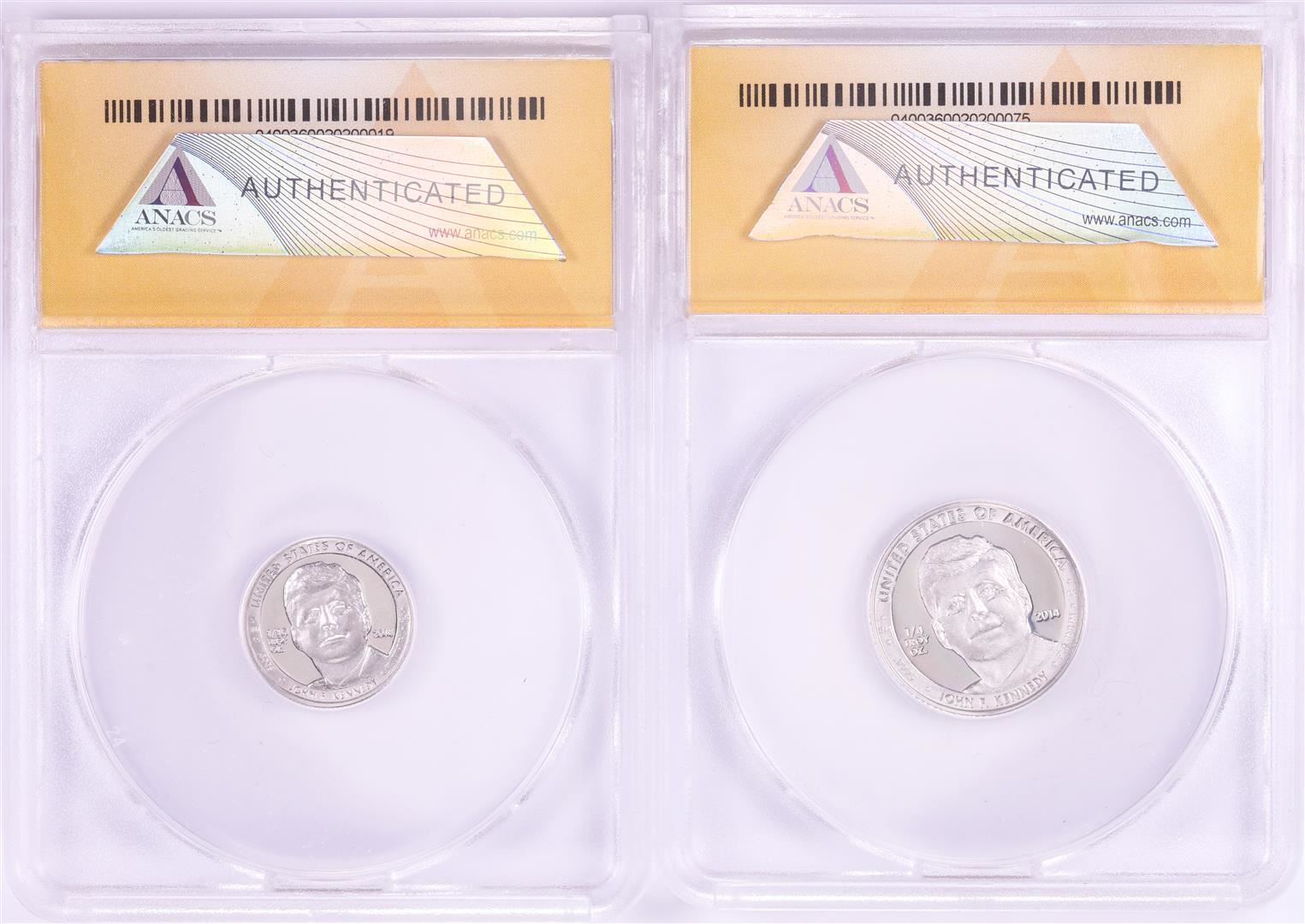 One Set of 2014 Proof 1/10 & 1/4 oz Platinum JFK Apollo 11 Anniversary Medals ANACS MS69. ANACS Certified.