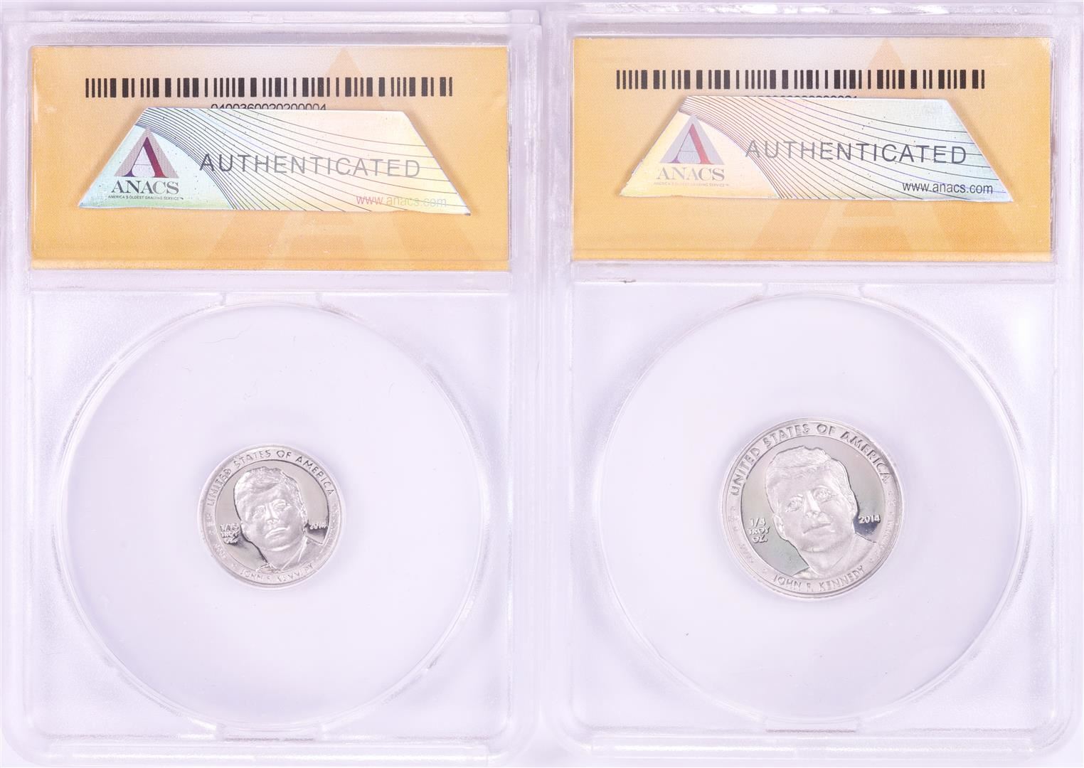One Set of 2014 Proof 1/10 & 1/4 oz Platinum JFK Apollo 11 Anniversary Medals ANACS MS69. ANACS Certified.