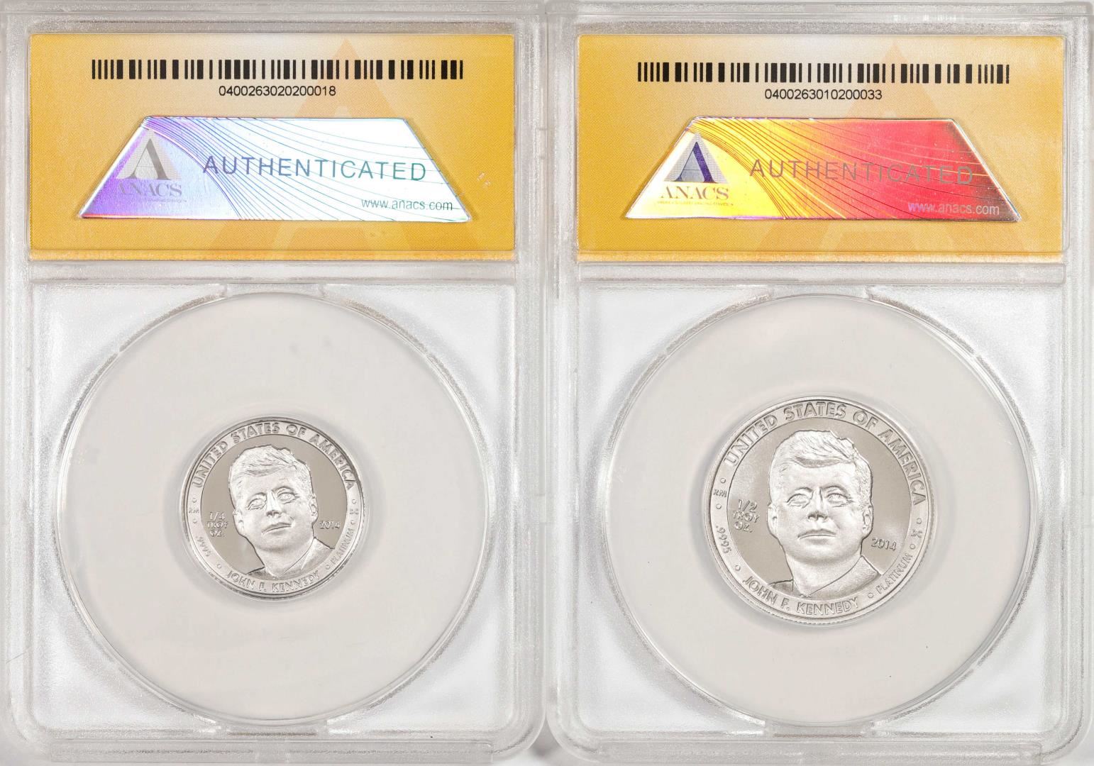 One Set of 2014 Proof 1/4 oz & 1/2 oz Platinum JFK Apollo 11 Anniversary Medal ANACS MS69. ANACS Certified.