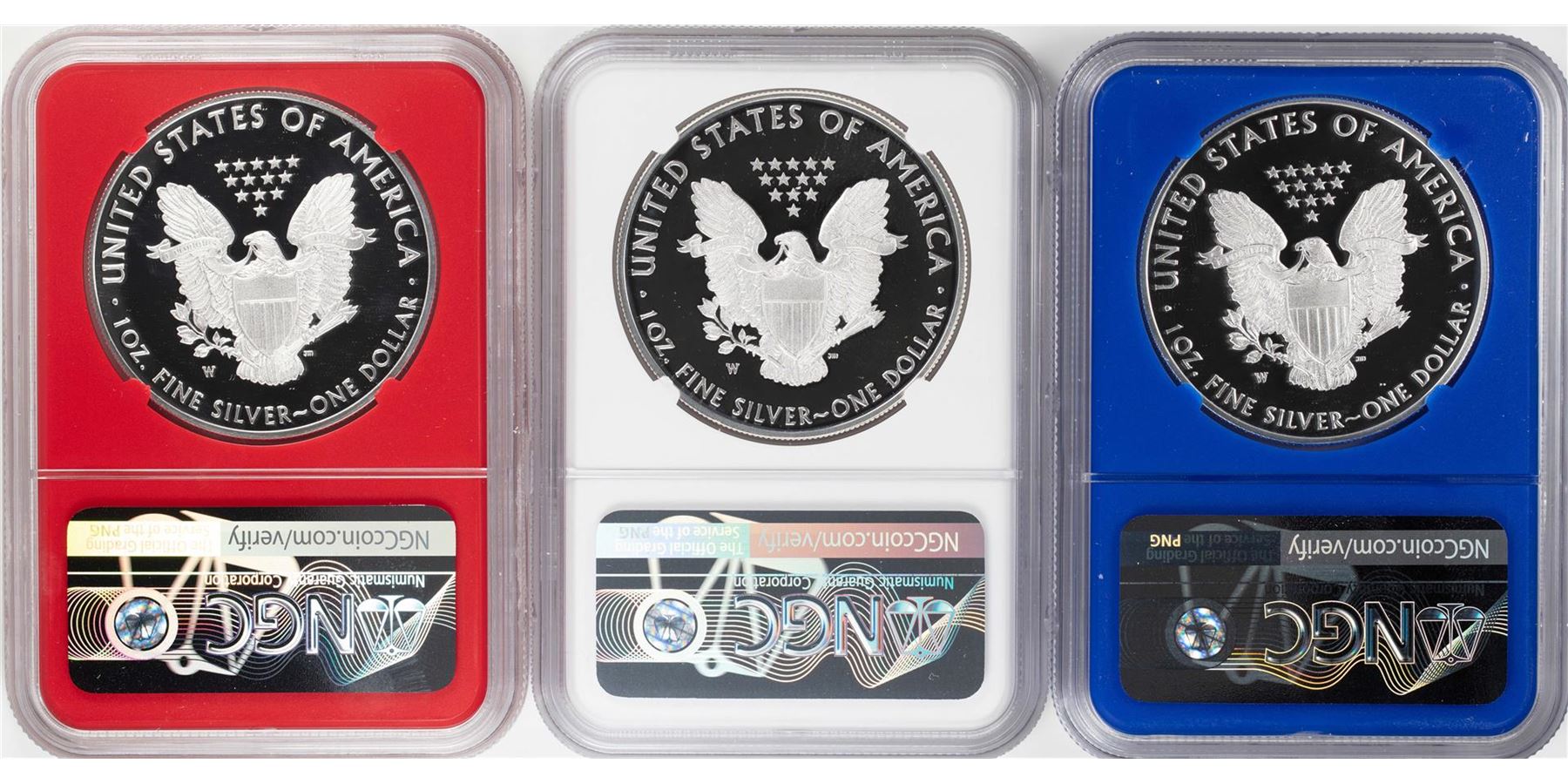 Set of 2019-W $1 Proof American Silver Eagle Coins NGC PF70 Ultra Cameo Red White Blue