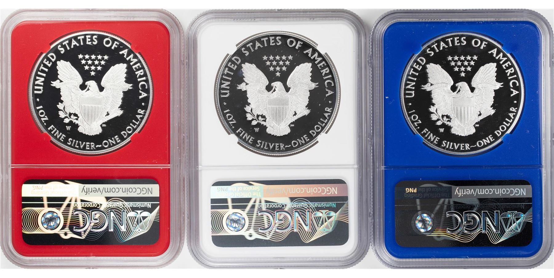 Set of 2019-W $1 Proof American Silver Eagle Coins NGC PF70 Ultra Cameo Red White Blue