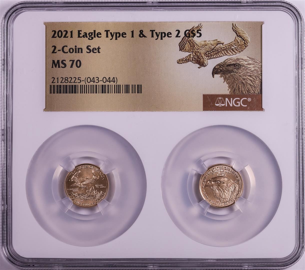 Set of 2021 Type 1 & Type 2 $5 American Gold Eagle Coins NGC MS70