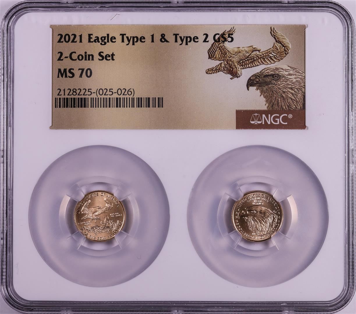 Set of 2021 Type 1 & Type 2 $5 American Gold Eagle Coins NGC MS70
