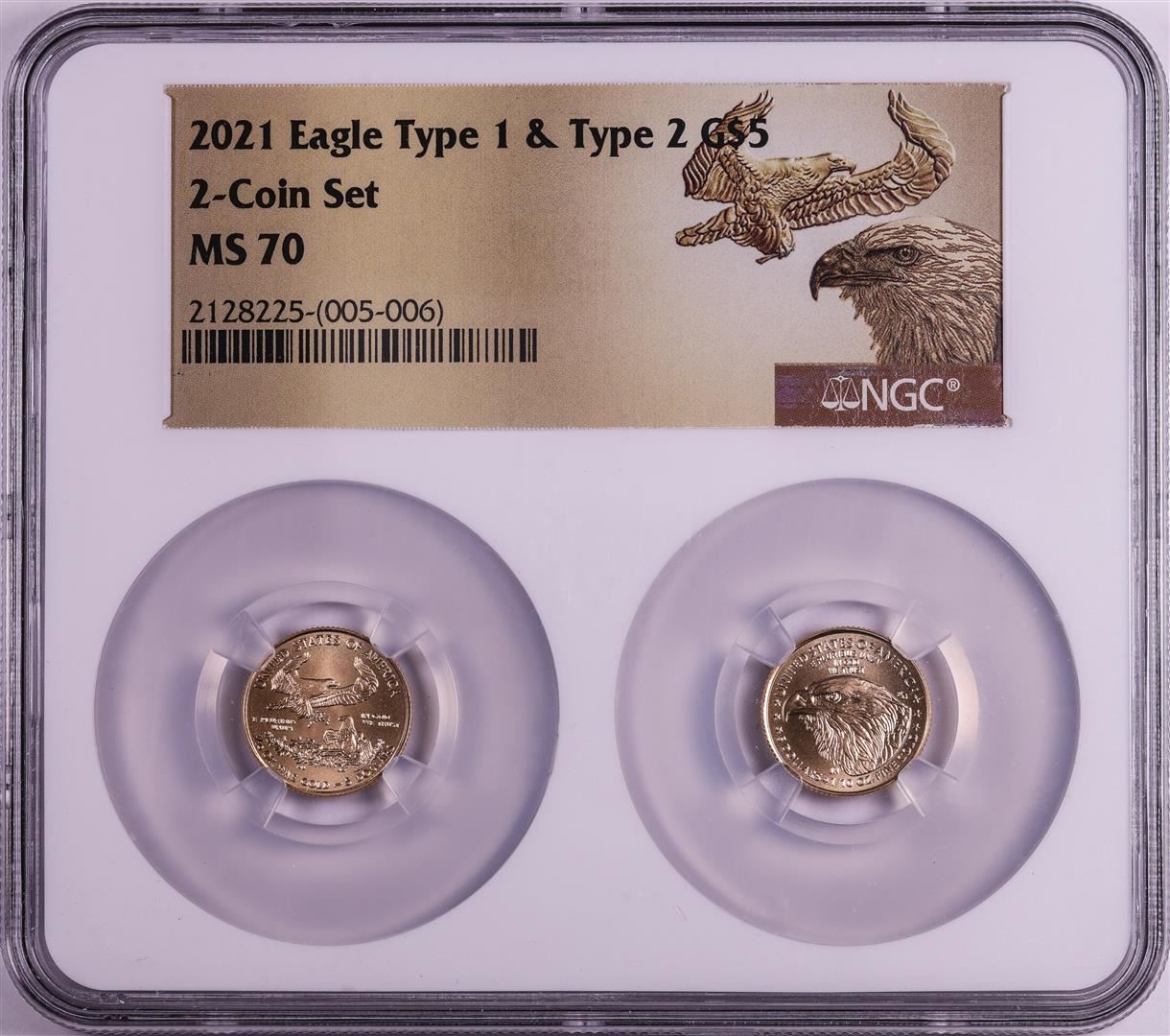 Set of 2021 Type 1 & Type 2 $5 American Gold Eagle Coins NGC MS70
