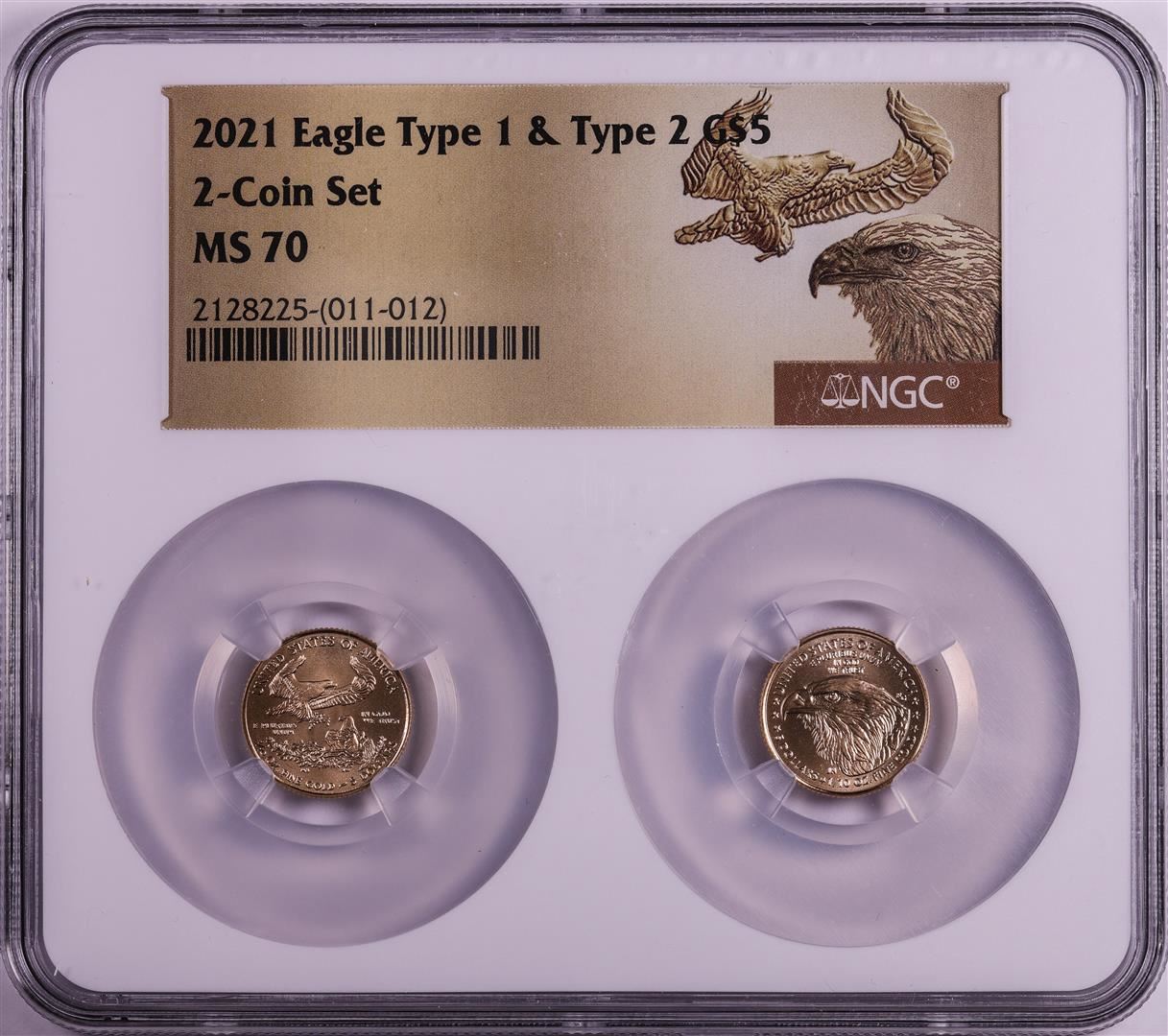 Set of 2021 Type 1 & Type 2 $5 American Gold Eagle Coins NGC MS70