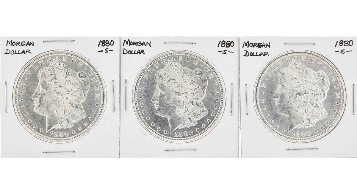 Set of (3) 1880-S $1 Morgan Silver Dollar Coins