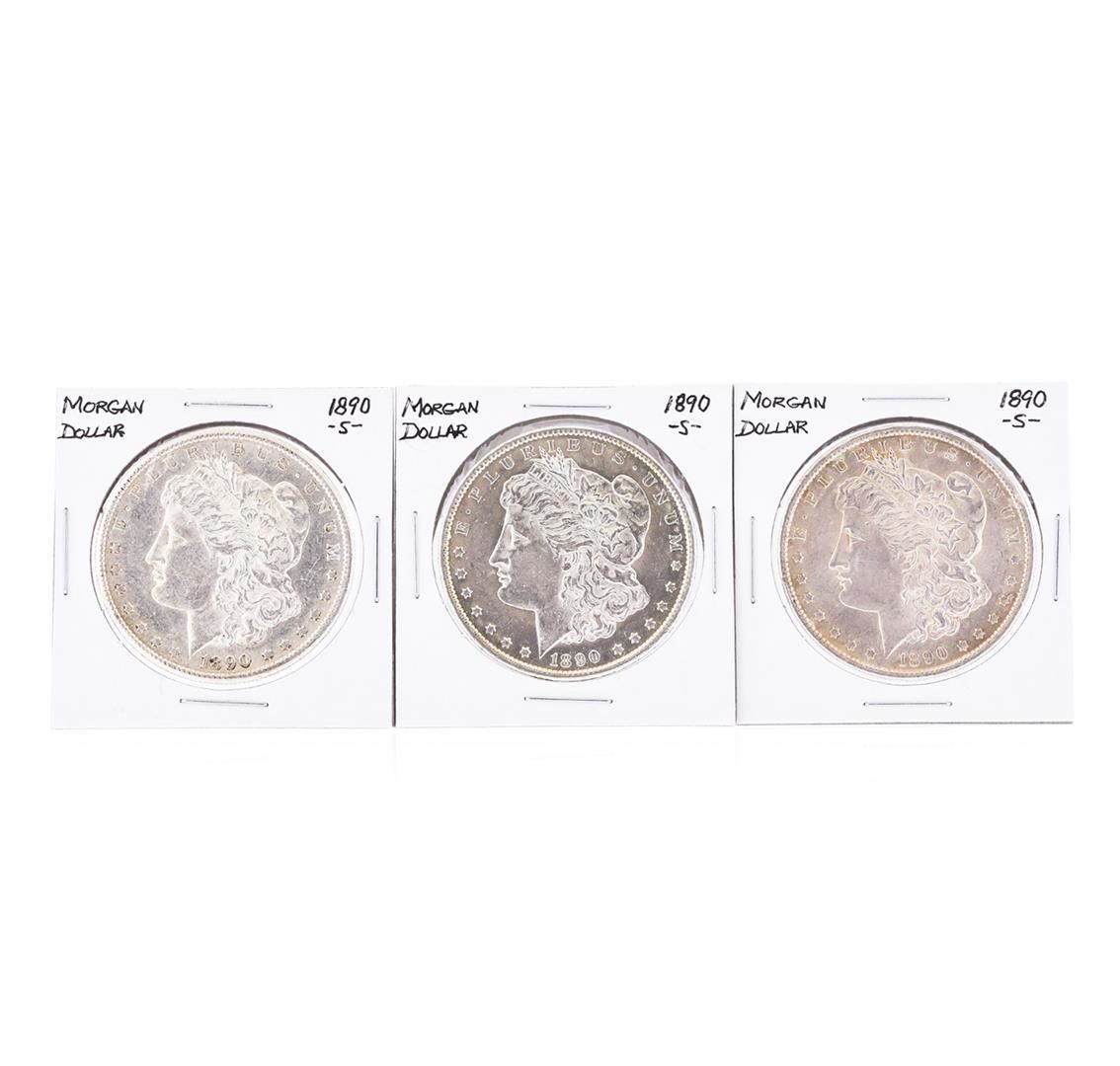 One Set of (3) 1890-S $1 Morgan Silver Dollar Coins.