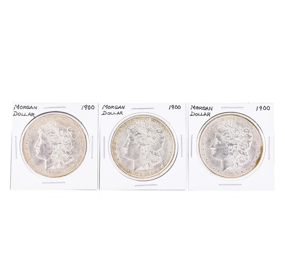 One Set of (3) 1900 $1 Morgan Silver Dollar Coins.