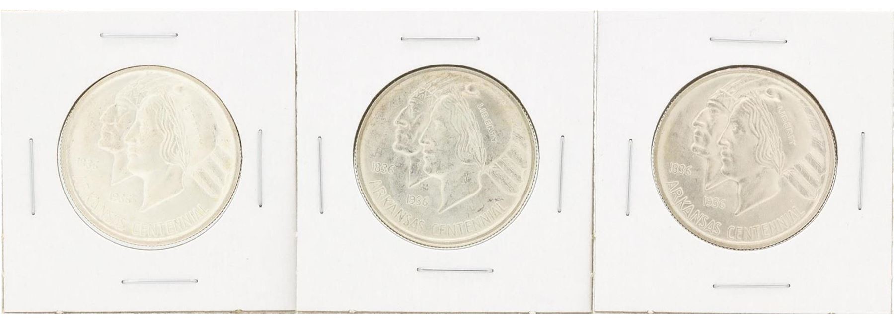 One Set of (3) 1935 Arkansas Centennial Commemorative Half Dollar Coins.
