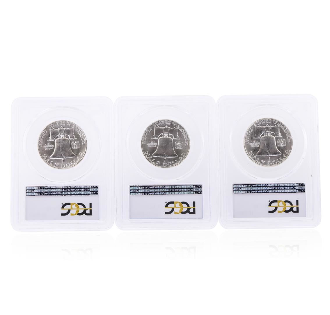 One Set of (3) 1962-D Franklin Half Dollar Coins PCGS MS64. PCGS Graded.