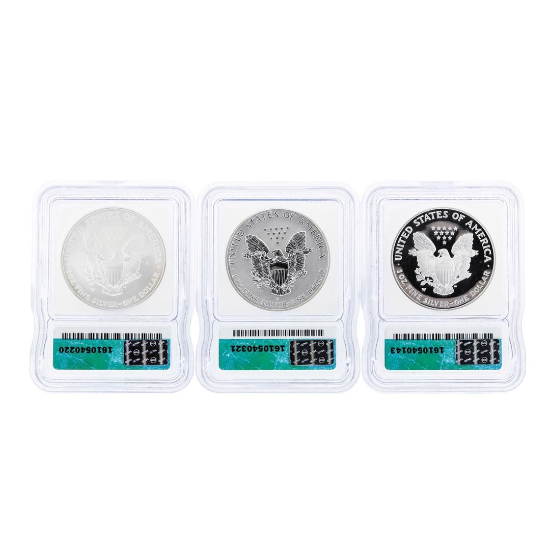 One Set of (3) 2006-W $1 American Silver Eagle Proof Coins ICG Graded 70. ICG Certified.