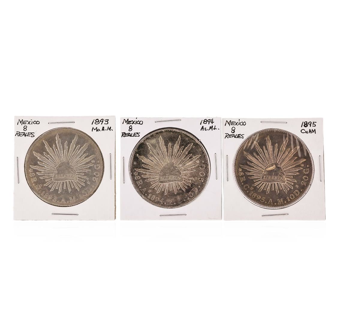 One Set of (3) 8 Reales Mexico Silver Coins.