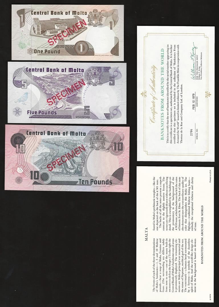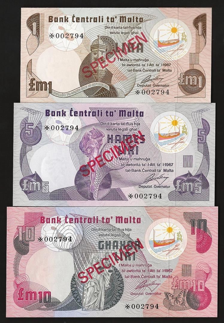 One Set of (3) Central Bank of Malta Specimen Bank Notes.