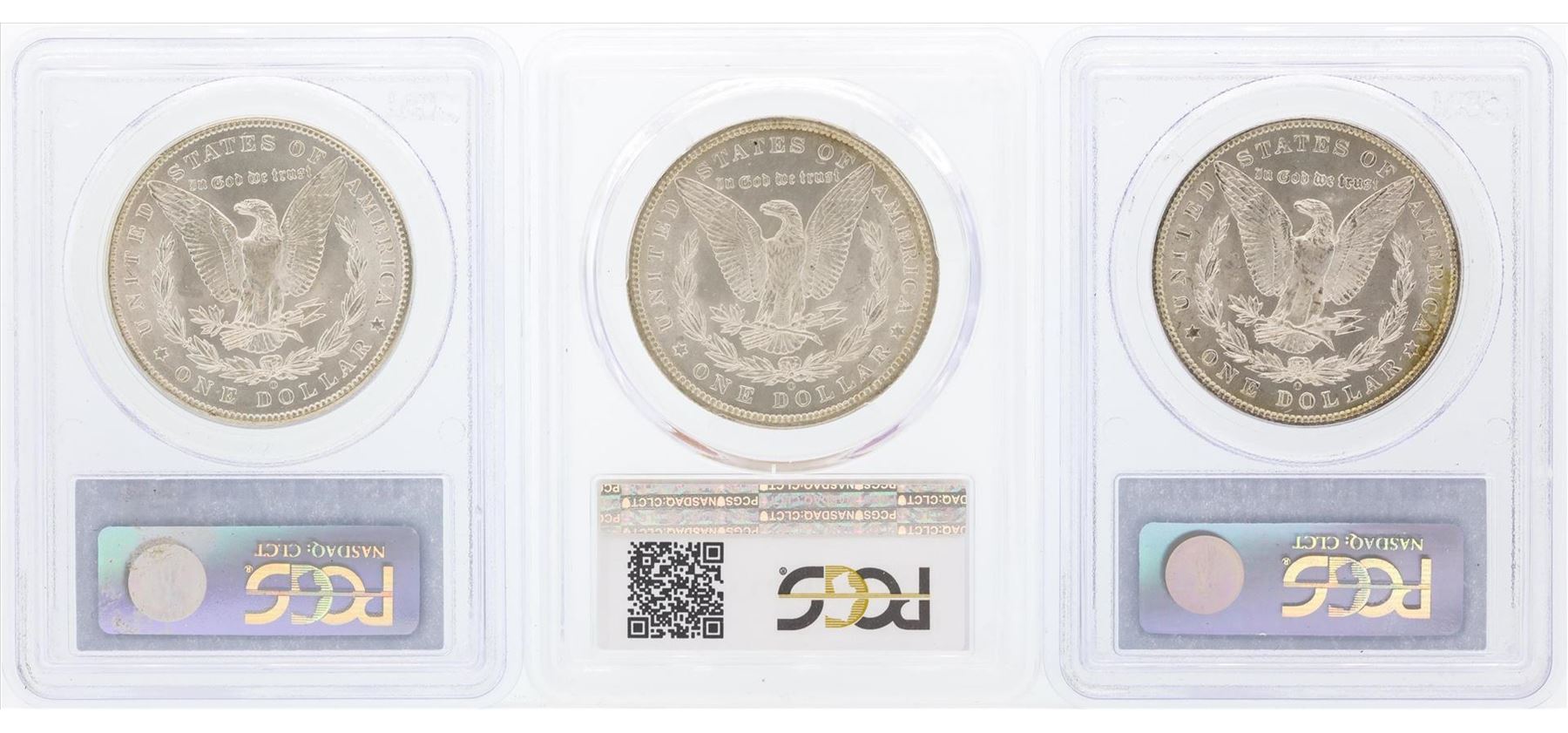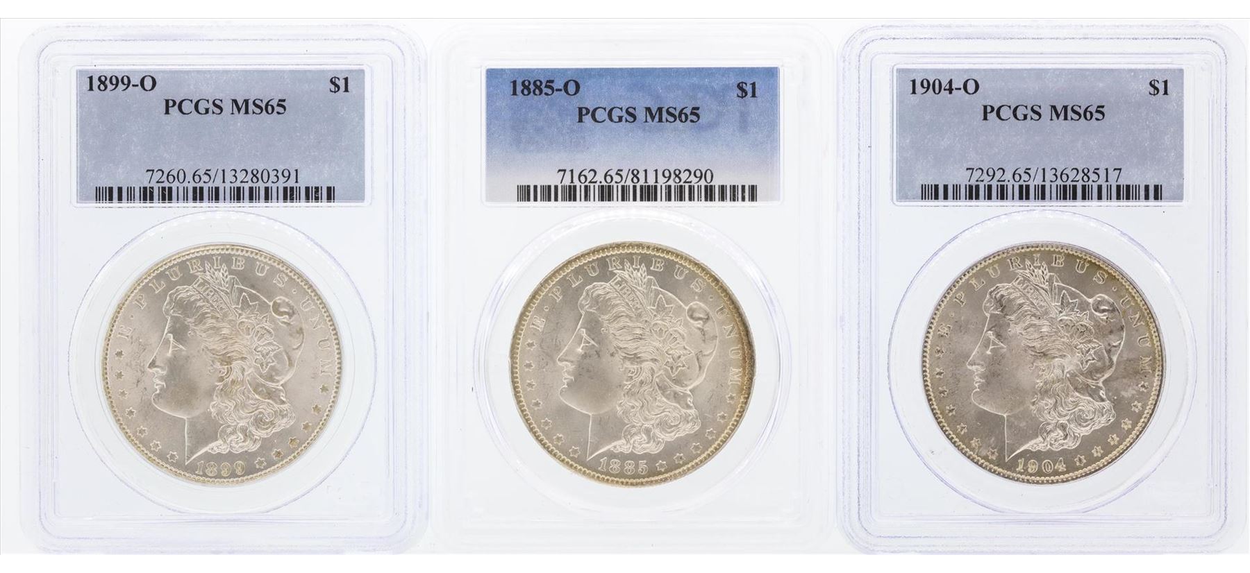One Set of (3) New Orleans Mint $1 Morgan Silver Dollar Coins PCGS MS65. PCGS Graded.