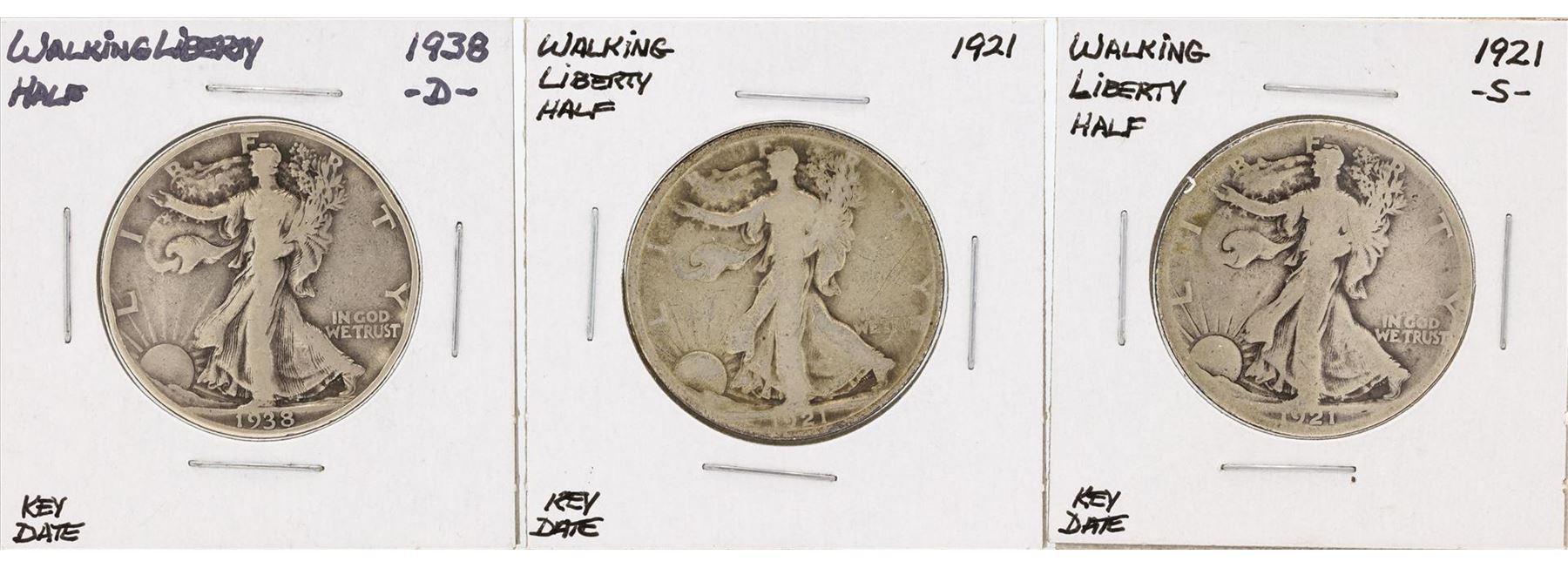 One Set of (3) Walking Liberty Half Dollar Key Date Coins.