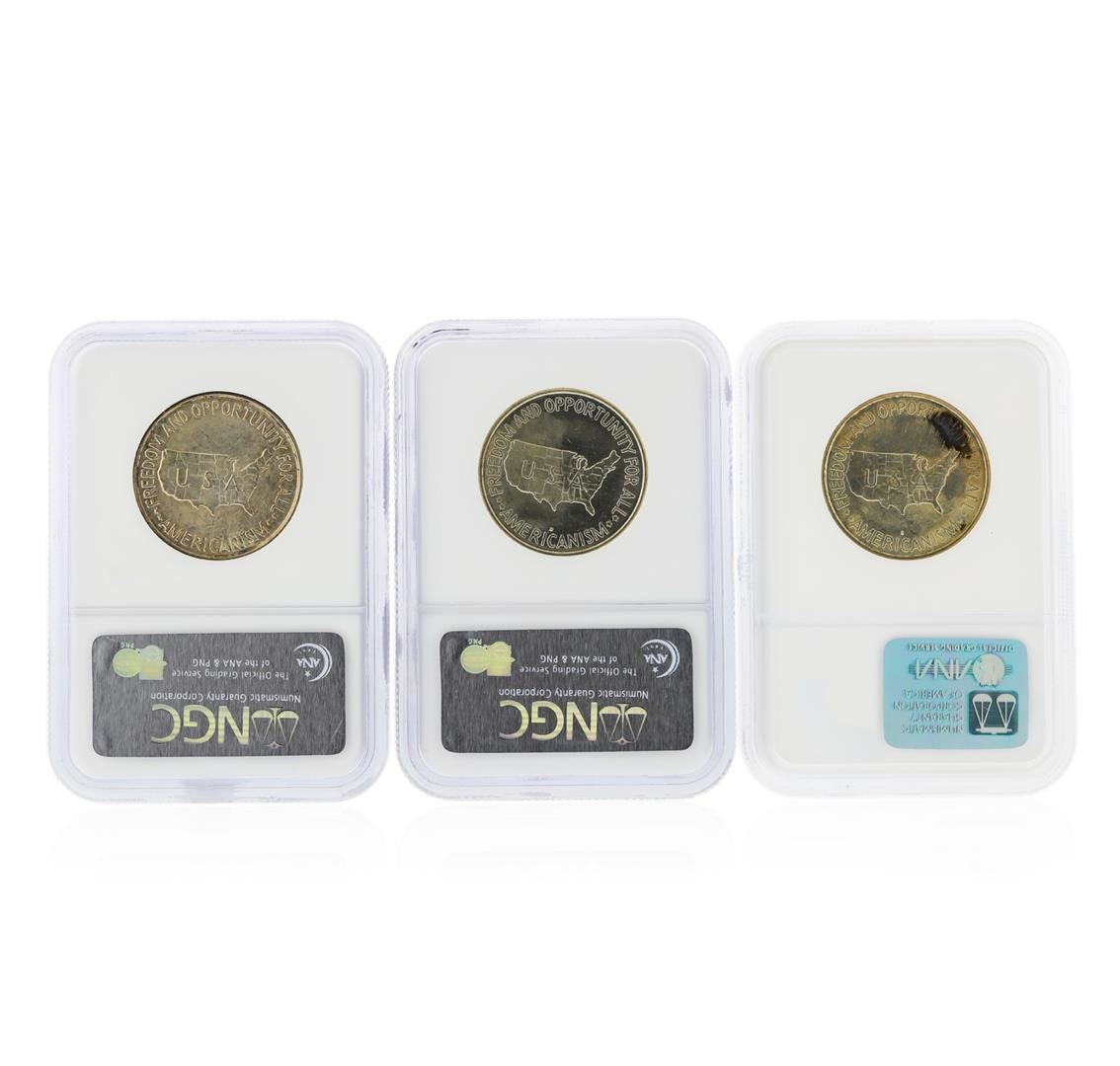 This set includes (3) Washington-Carver Commemorative Half Dollar Coins including: 1952-S NGC Graded MS65, 1952-D NGC Graded MS65, and 1952 NGC Graded MS65. NGC Certified.