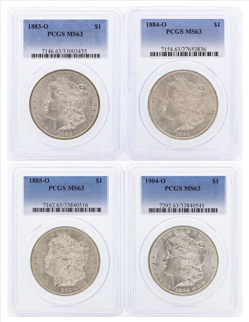 One Set of (4) $1 Morgan Silver Dollar Coins PCGS MS63. PCGS Graded.