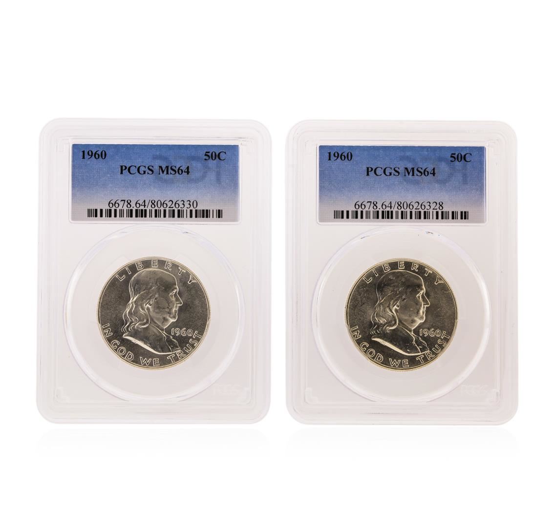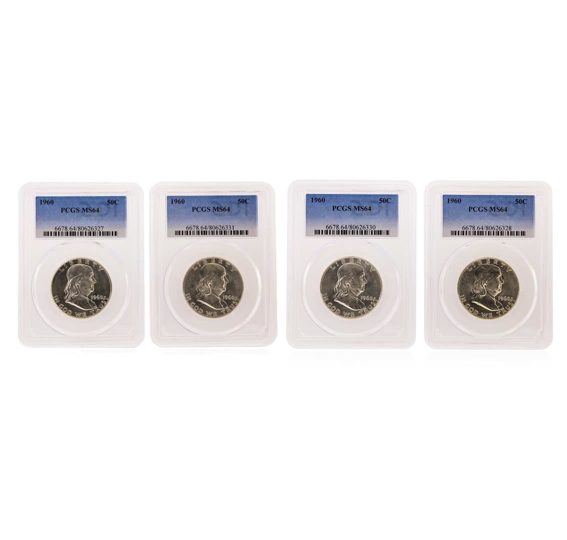 One Set of (4) 1960 Franklin Half Dollar Coins PCGS Graded MS64. PCGS Graded.
