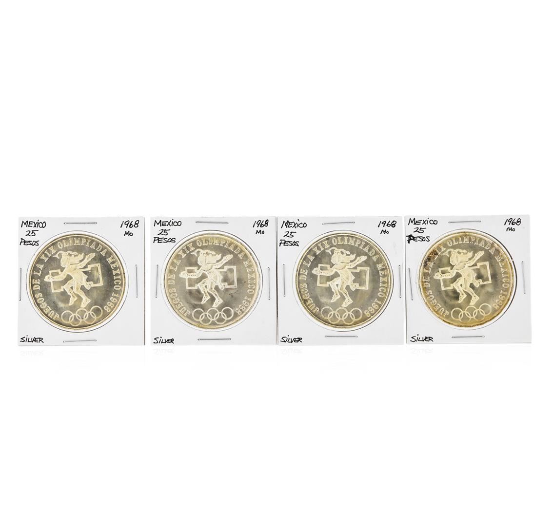 One Set of (4) 1968 Mo Mexico 25 Pesos Silver Coins.