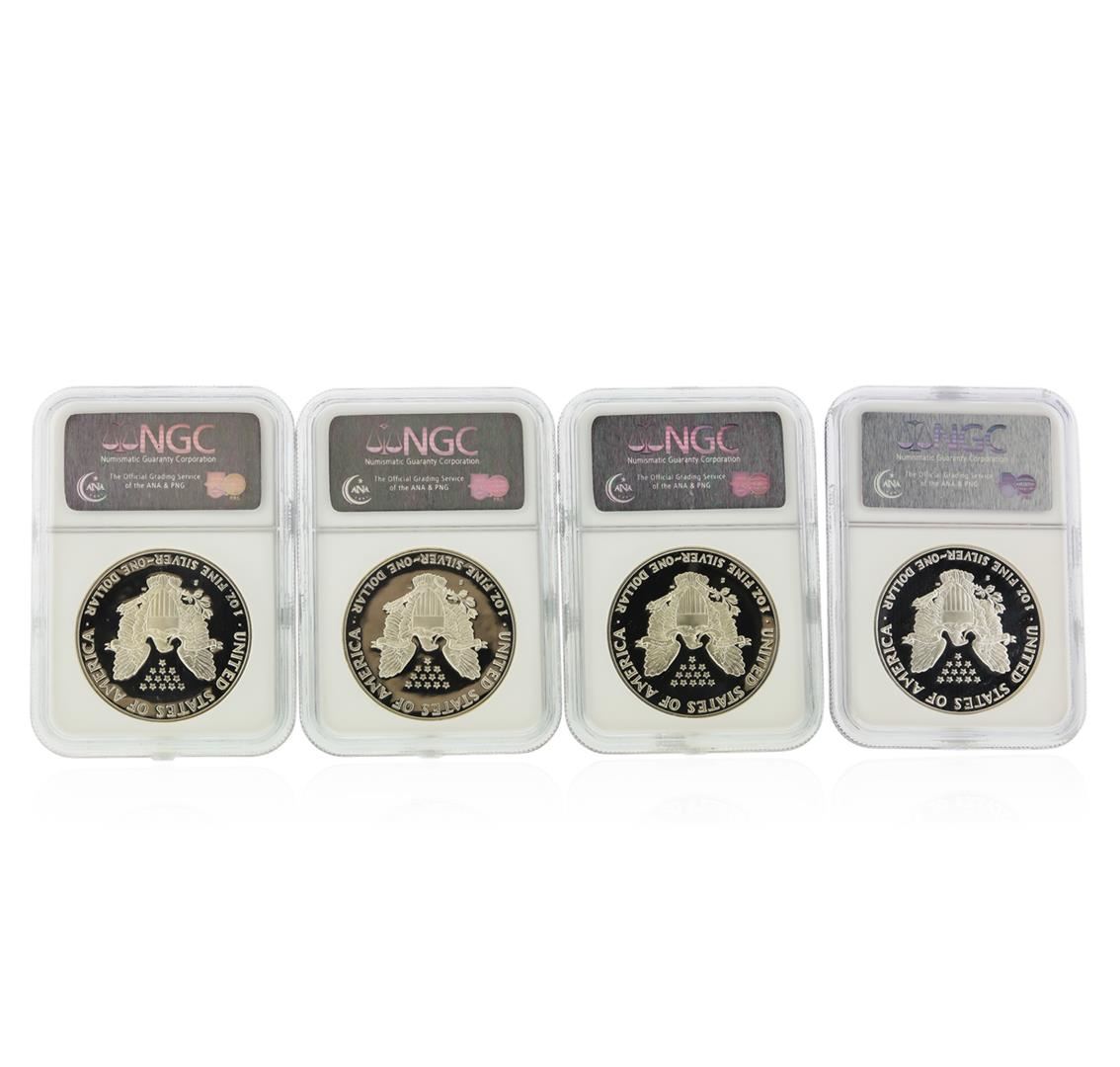 One Set of (4) 1986-1989 $1 American Silver Eagle Coins NGC PF69 Ultra Cameo. NGC Certified.