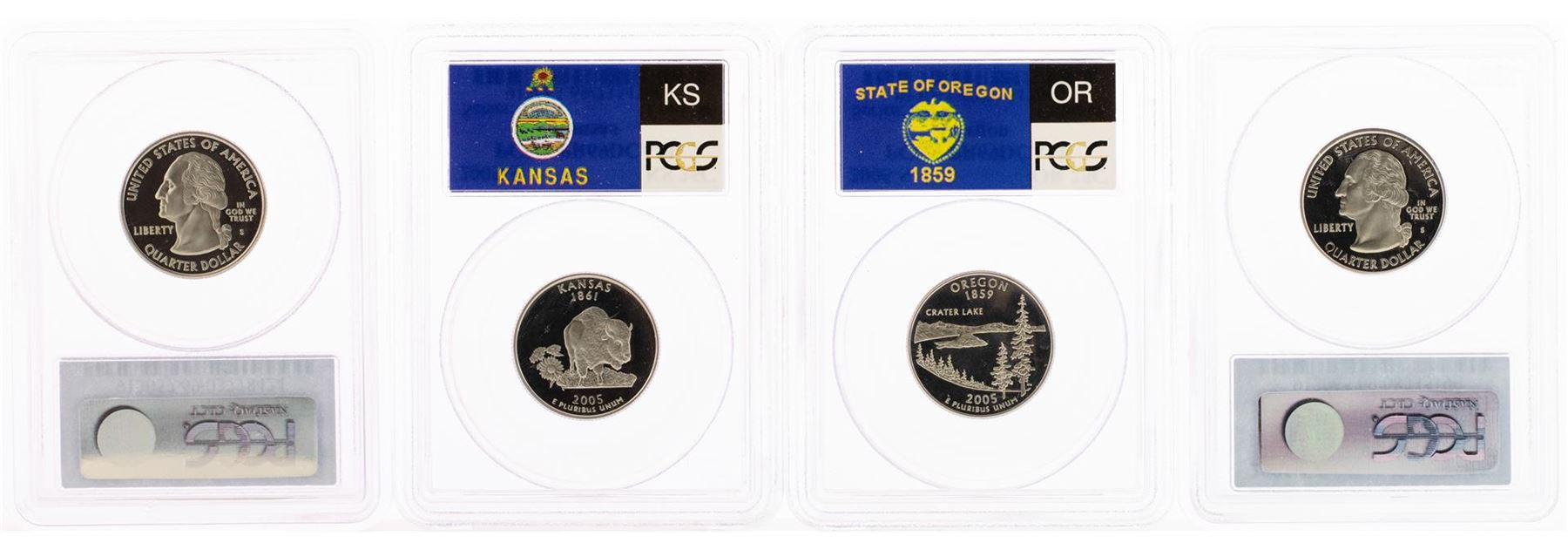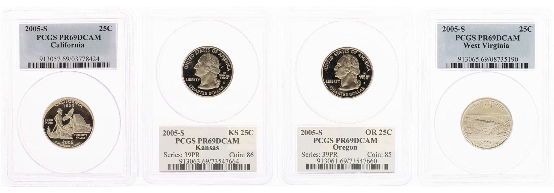 One Set of (4) 2005-S Proof State Quarter Coins PCGS PR69DCAM. PCGS Graded.