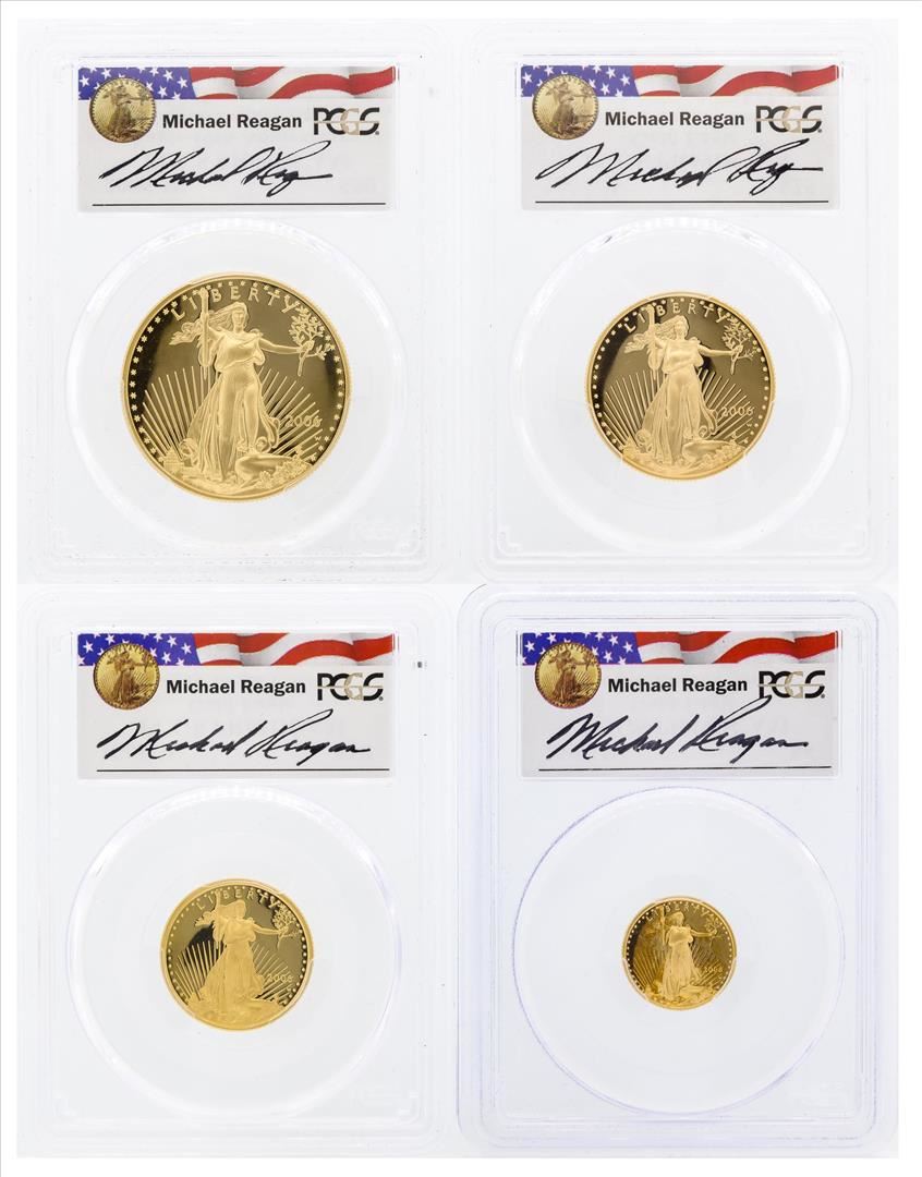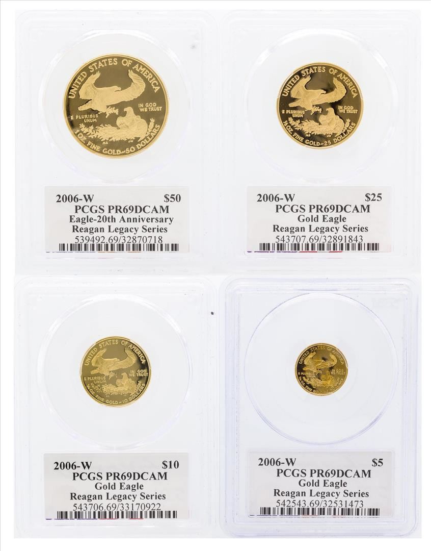 One Set of (4) 2006-W 20th Anniversary American Gold Eagle Coins Reagan PCGS PR69DCAM. PCGS Graded.