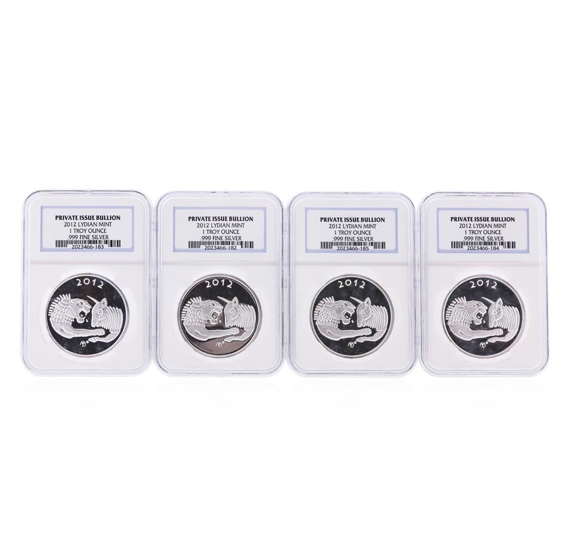 One Set of (4) 2012 Lydian Mint .999 Silver 1 Troy Ounce Coins NGC Certified. NGC Certified.
