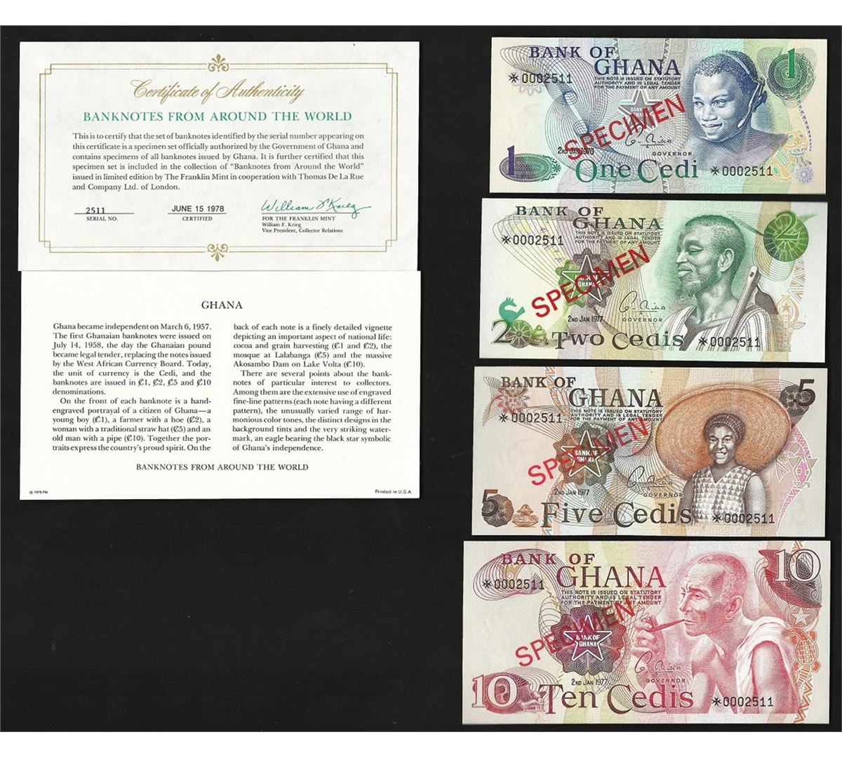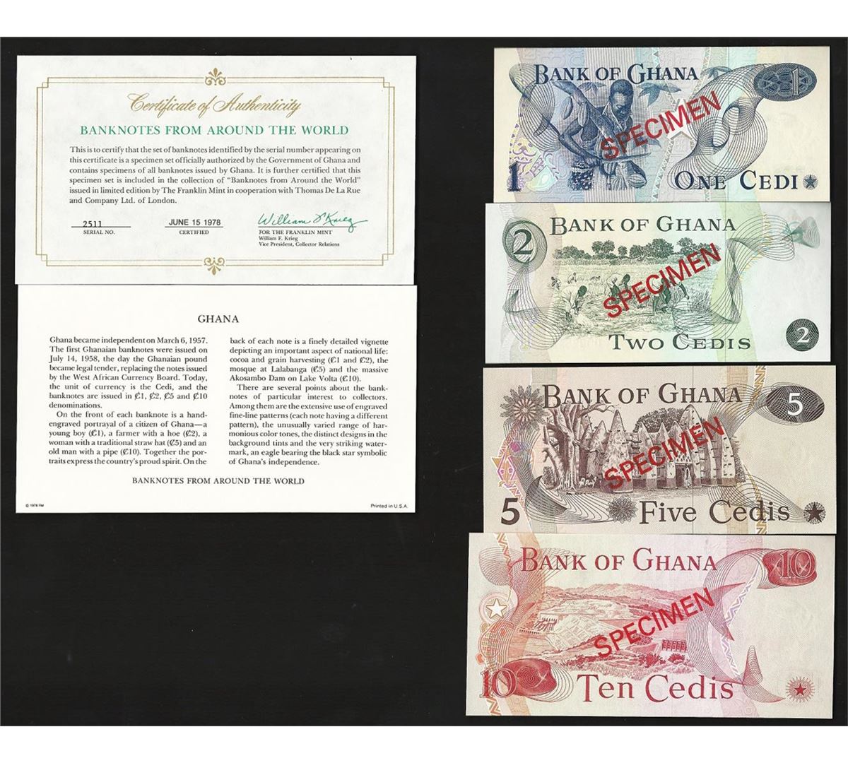One Set of (4) Bank of Ghana Specimen Bank Notes.