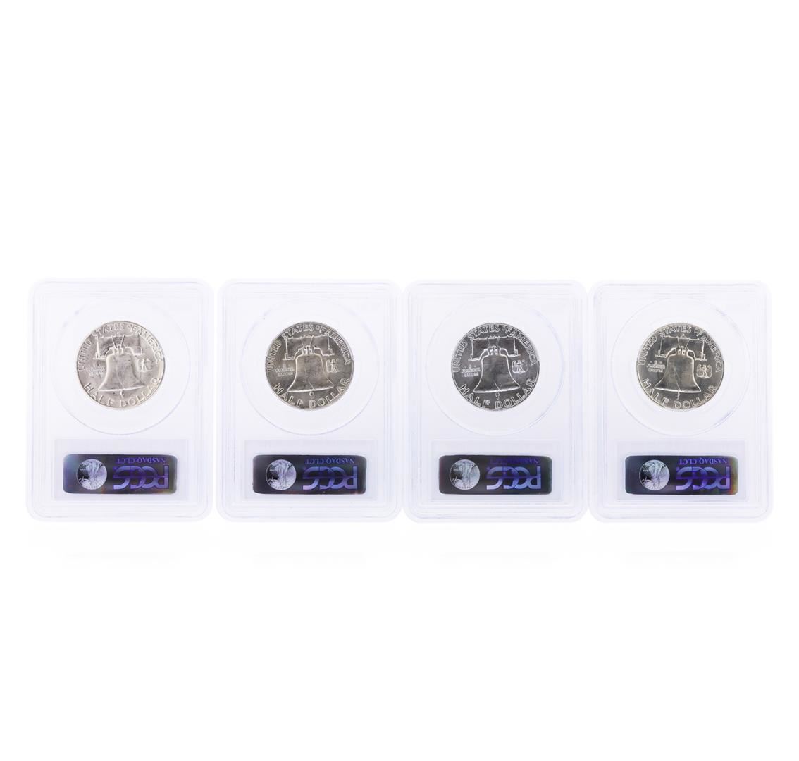 Set of (4) Franklin Half Dollar PCGS Graded Coins which includes the following (4) coins: (1) 1952-S Franklin Half Dollar PCGS Graded MS65, (1) 1954 Franklin Half Dollar PCGS Graded MS65, (1) 1956 Franklin Half Dollar PCGS Graded MS65, and (1) 1957-D Fran PCGS Graded.
