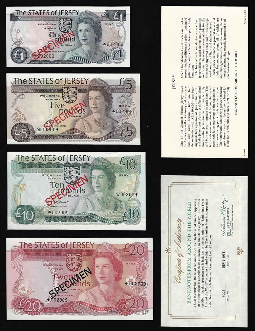 Set of (4) The States of Jersey Channel Islands Specimen Bank Notes