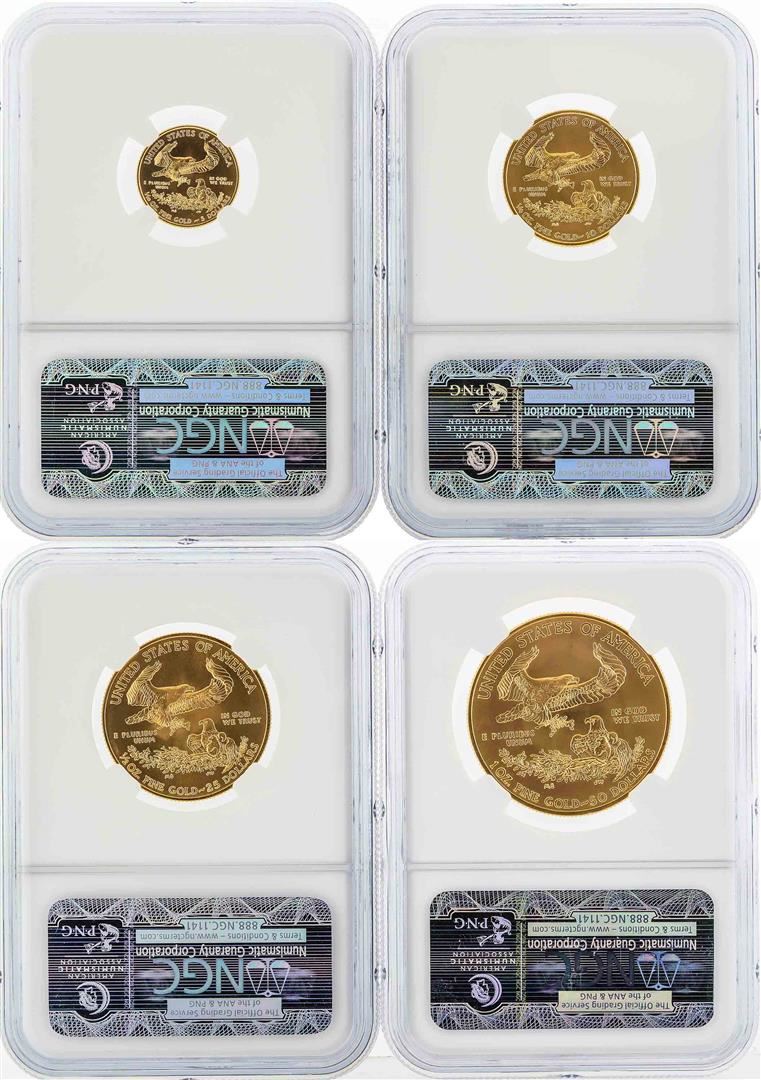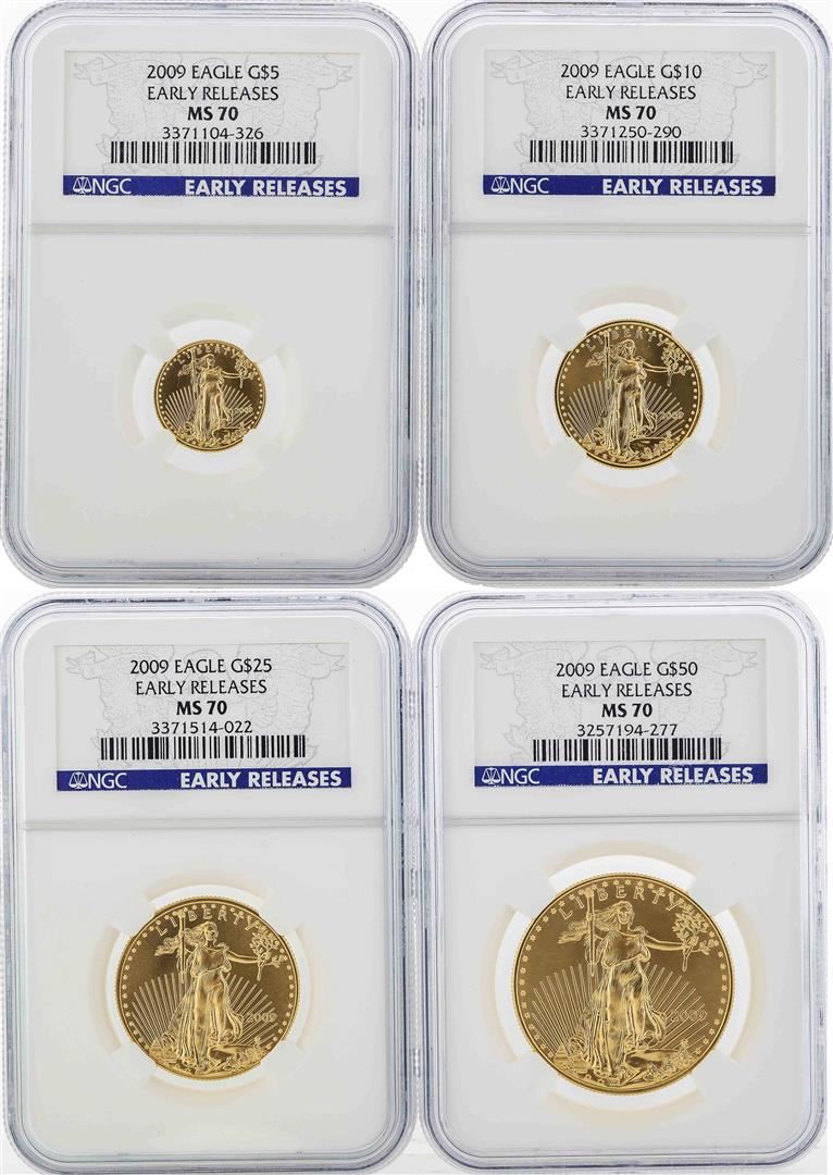 One Set of $5/$10/$25/$50 2009 American Gold Eagle Coins NGC MS70. NGC Certified.