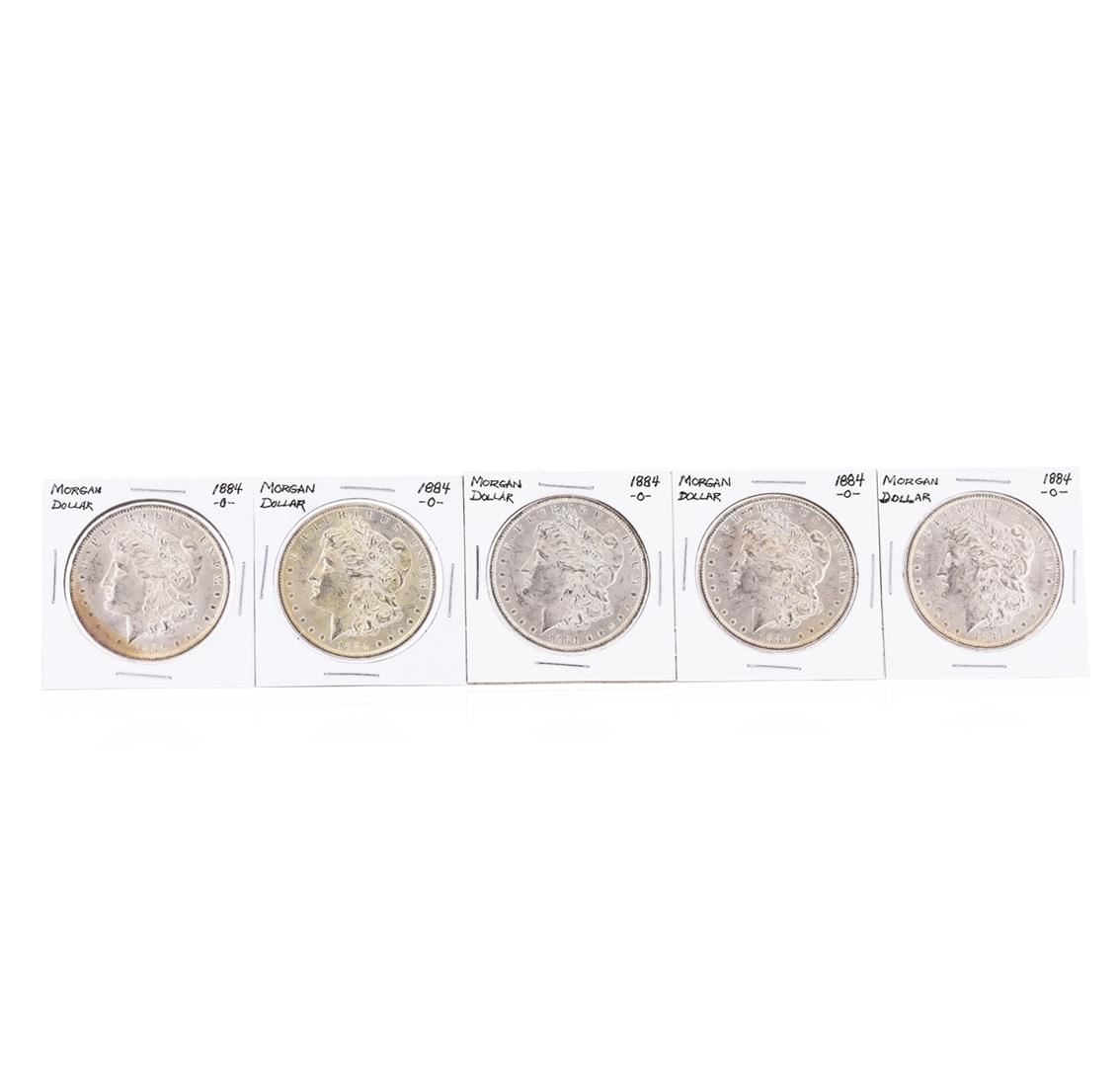 One Set of (5) 1884-O $1 Morgan Silver Dollar Coins.