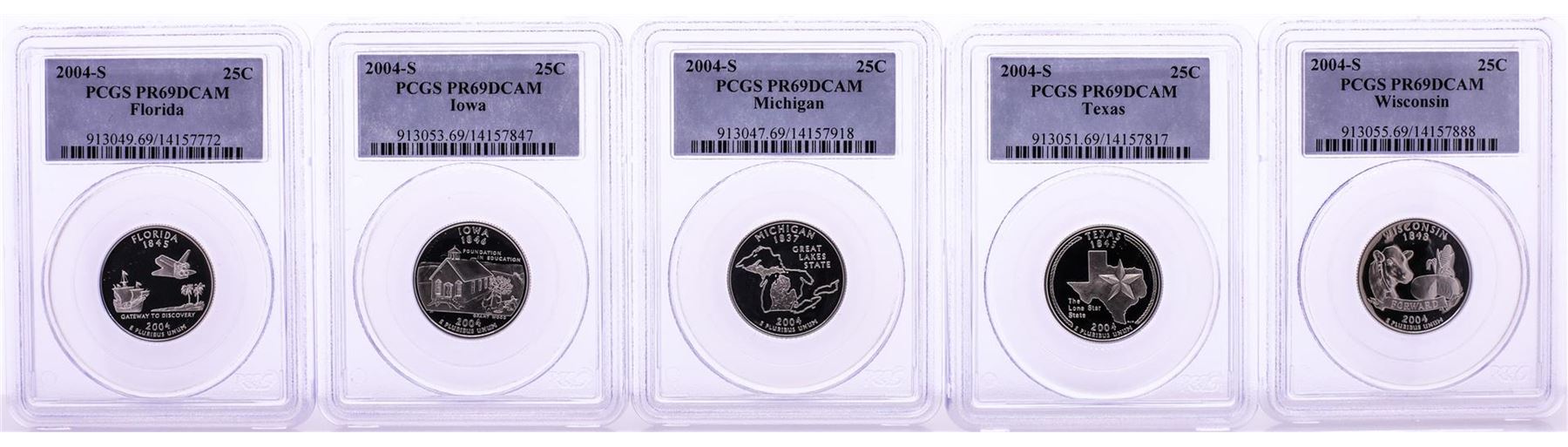 One Set of (5) 2004-S Proof State Quarter Coins PCGS PR69DCAM. PCGS Graded.