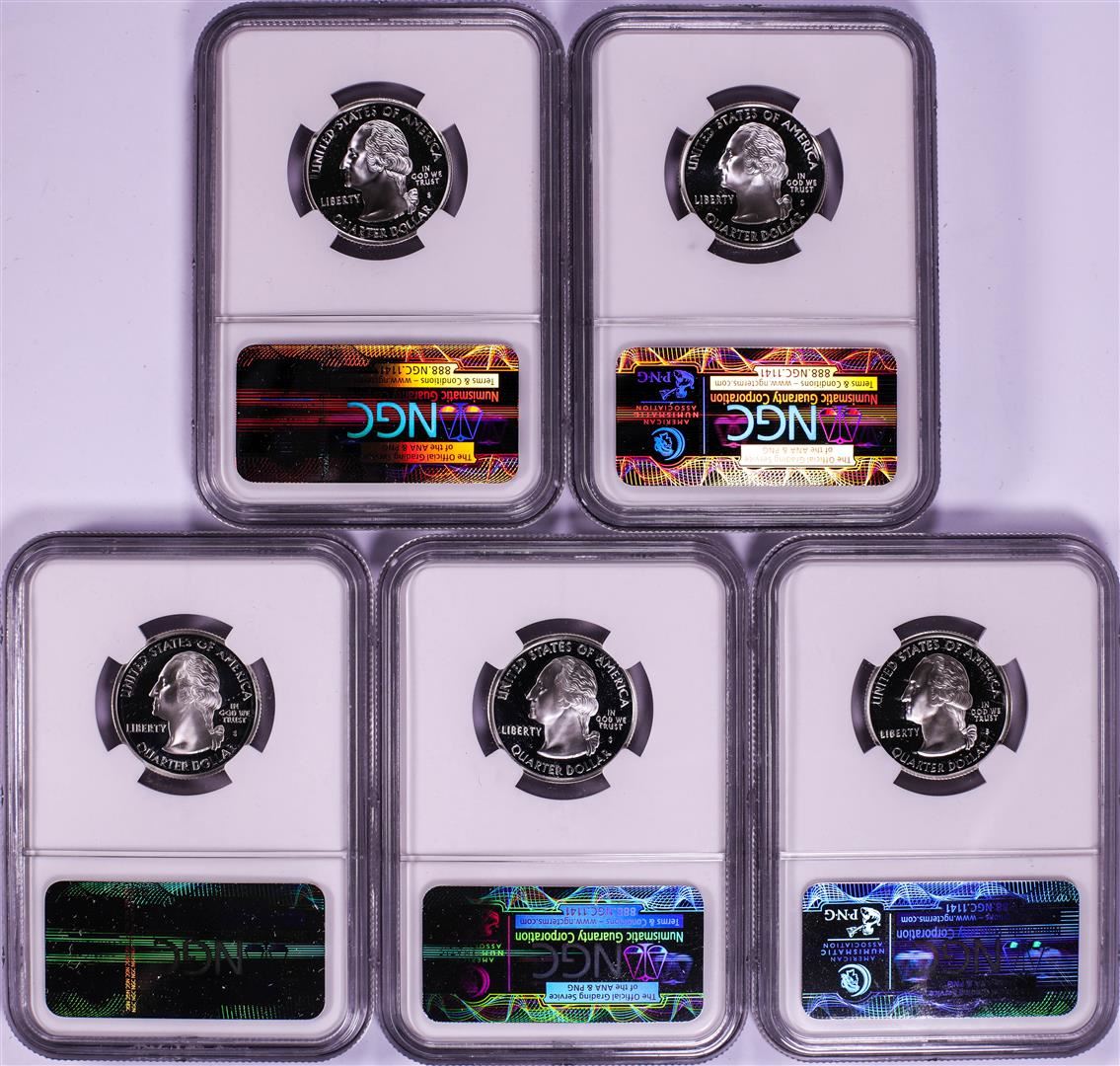 Set of (5) 2006-S Silver Proof State Quarter Coins NGC PF69 Ultra Cameo