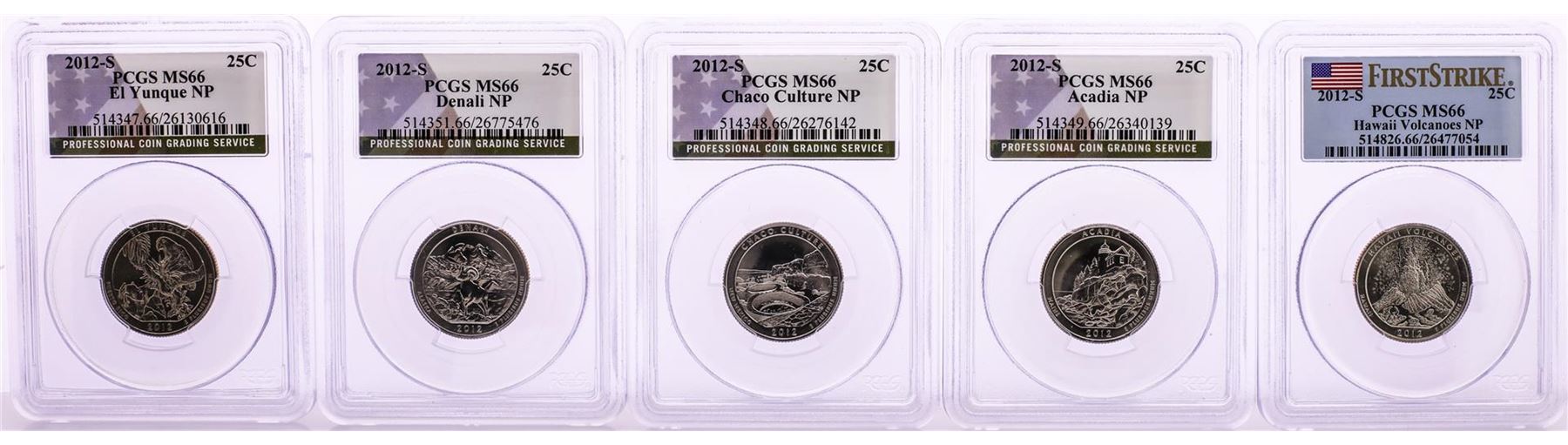 One Set of (5) 2012-S National Parks Quarter Coins PCGS MS66. PCGS Graded.
