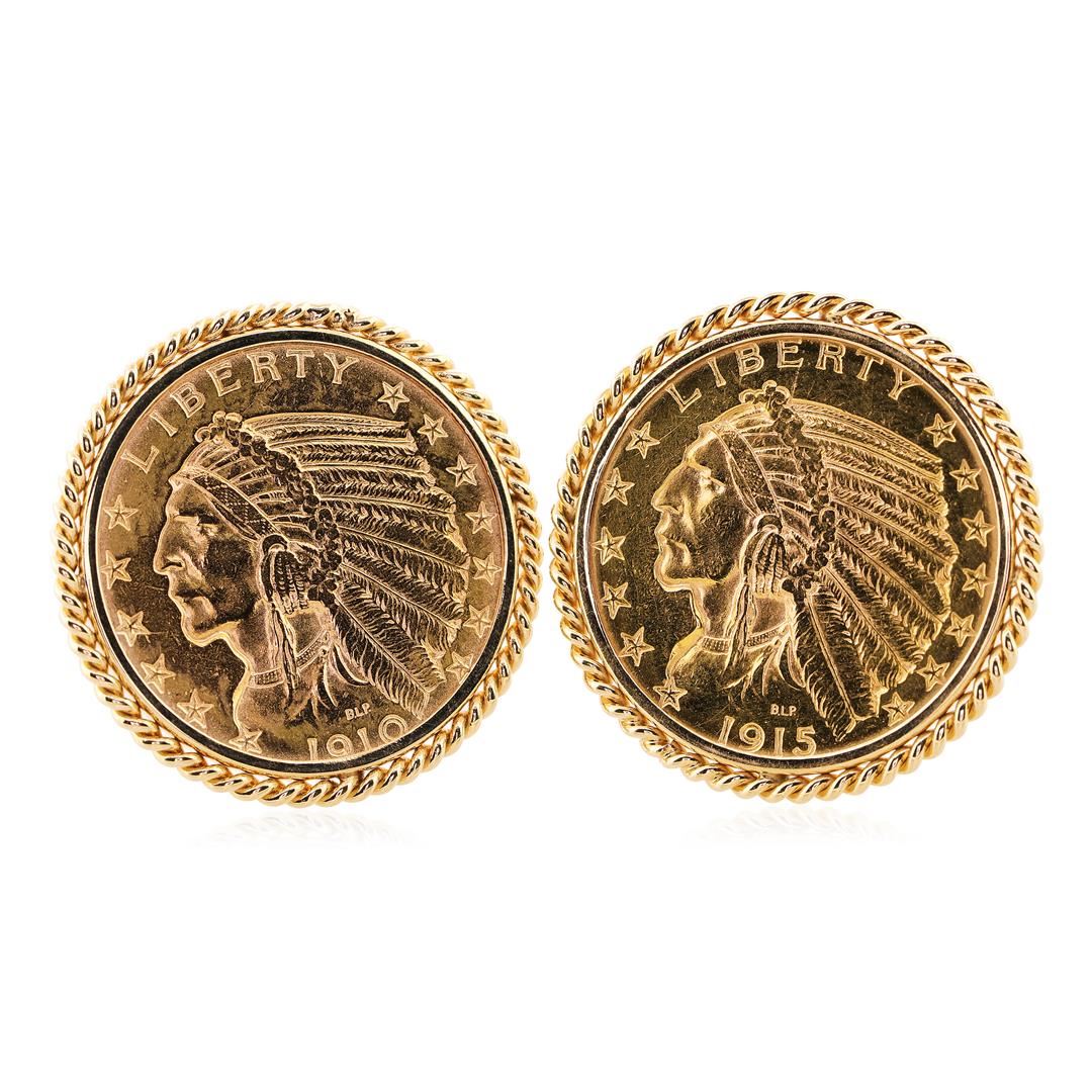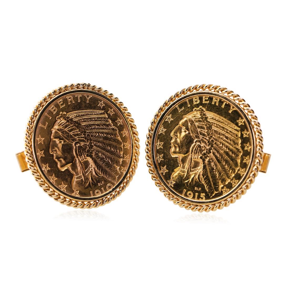 One Set of $5 Half Eagle Gold Coins in 14K Gold Cuff Links.