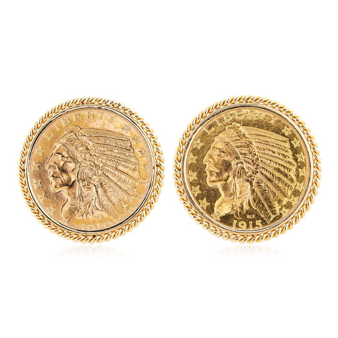 One Set of $5 Half Eagle Gold Coins in 14K Gold Cuff Links.