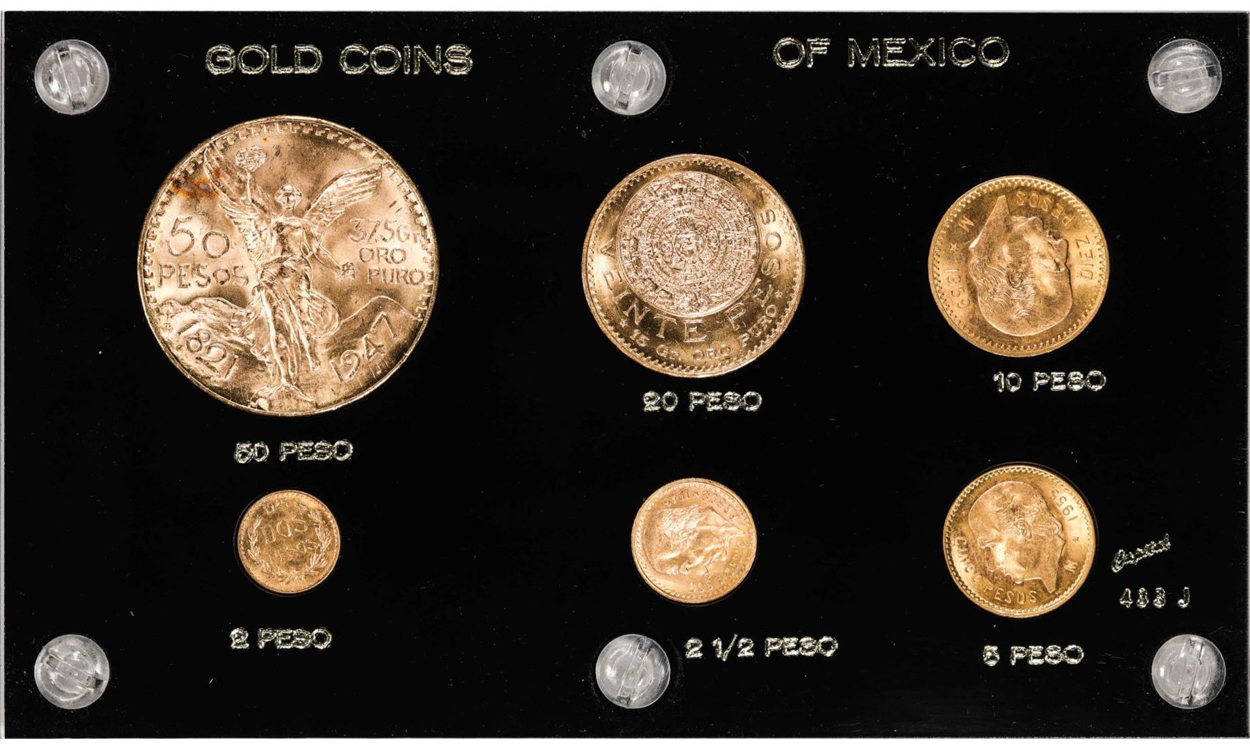 One Set of (6) Mexico Gold Coins in Capital Plastic Holder.