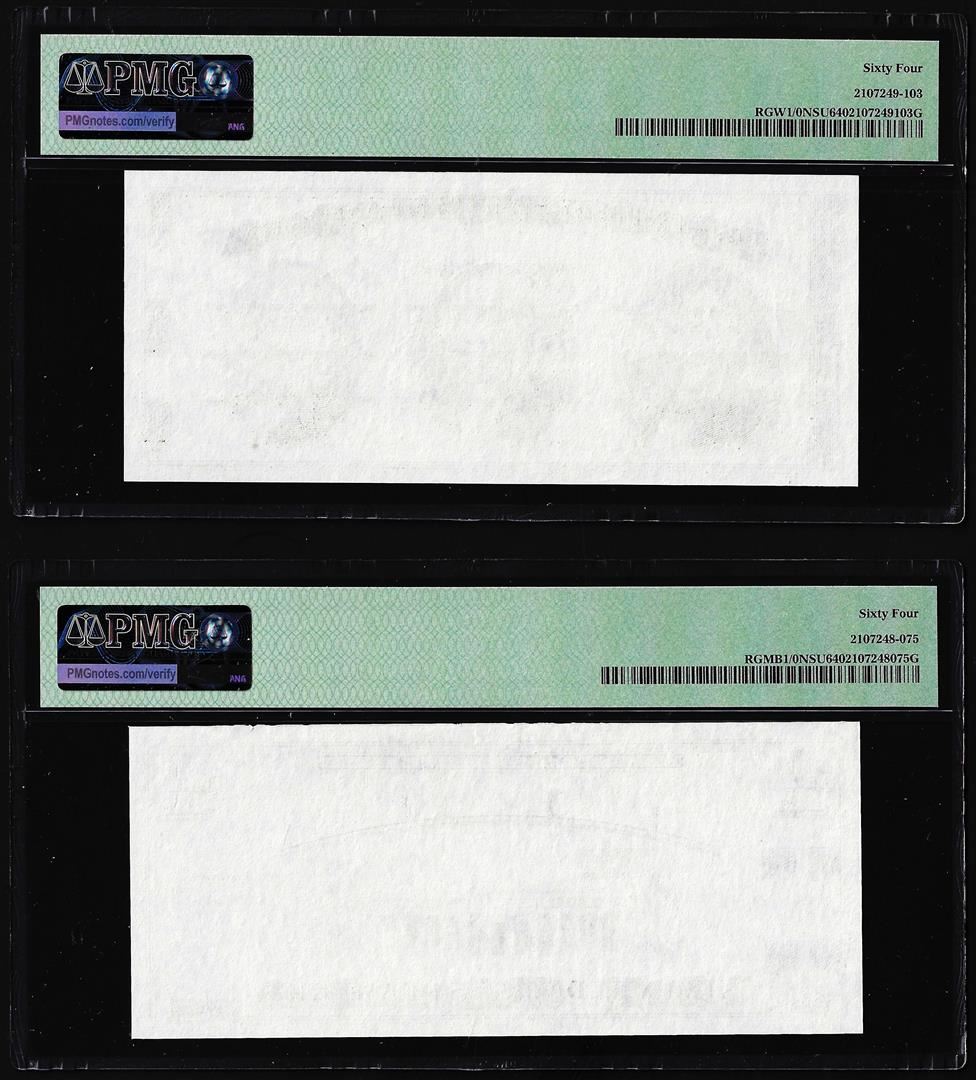 Set of Giori Test Note Washington & Lincoln Memorial PMG Choice Uncirculated 64